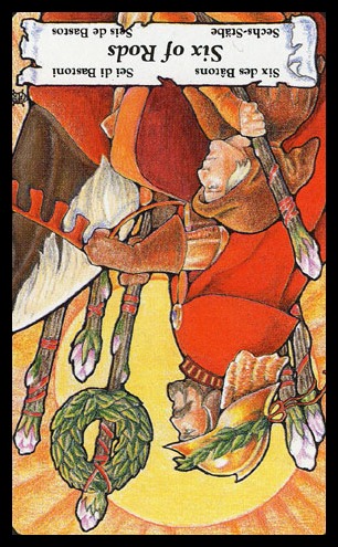 The 6 of Wands represents victory (over yourself maybe). 6 is the number that represents the rewards of hard work, which you did in card 5. When a 6 of Wands is in your game, you might be feeling a little proud with your accomplishments. But some modesty might help you shine even better.