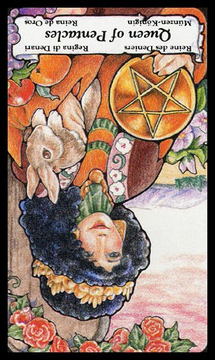 The Queen in the suit of Pentacles becomes aware of her Earthly attributes; she's reliable and sober, able to give good advice.