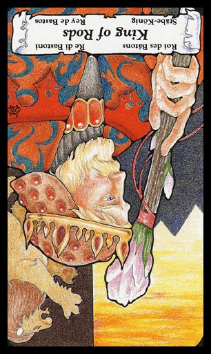 The King of Wands uses the properties of Wands (vitality, optimism, enthousiasm) to go out with confidence. He is seen as a leader with charisma.