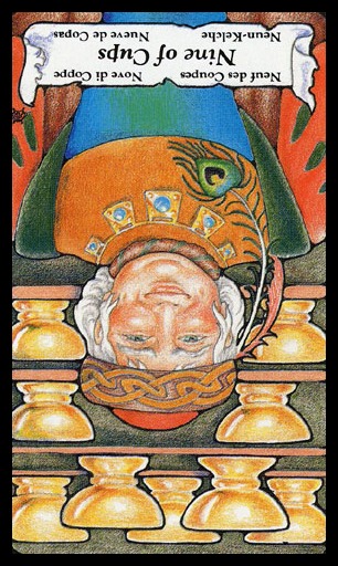 The 9 of Cups represents achievement and contentment. It is an excellent time to take some rest and enjoy yourself.