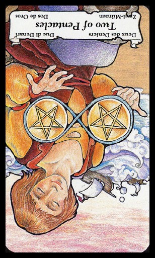 The 2 of Pentacles is an assignment number card, and the assignment here is to maintain a happy and relaxed attitude during a wait for results of what you started.