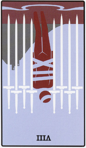 The 8 of Swords is about slowly regaining strength and energy. The 8 is an assignment number, and in the element of Swords it's a bit harder than usual.