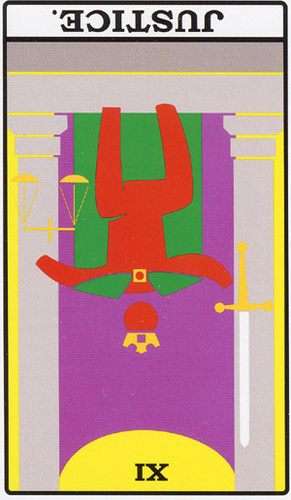 This card carries the number 11. In the Rider-Waite deck, Strength and Justice have swapped places because Waite saw links with the astrological signs Leo and Libra.