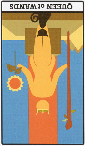 The Queen of Wands is drawn when you (have to) become more aware of the properties of the Wands suit; vitality, optimism and enthousiasm.
