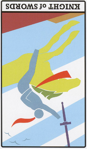 The Knight of Swords lacks the naivety of the Knight of Wands, he has analyzed the terrain ahead and weighed his options there. He knows what his own nature can throw into the mix, but does not let himself be held idle by that. The activities ahead will likely include the solving of conflicts and problems on your road to your ideal.