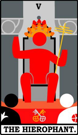 Where The Emperor is the chief of worldly power, The Hierophant is the head of spiritual matters.