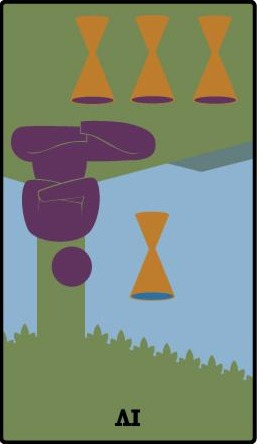 With the 4, the second cycle of this suit is commenced, where a choice between structure and feeling has to be made, where old securities have to be let go of to work towards a new future. But like Wands, Cups don't like structure much, they prefer to be free and dream rather than to make commitments and go for something.