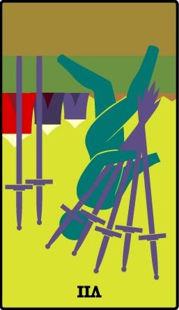 The 7 of Swords is about making slow progress because you can't trust the situation and/or people around you.