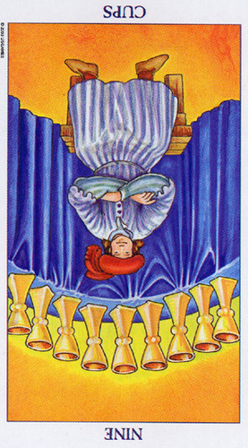 The 9 of Cups represents achievement and contentment. It is an excellent time to take some rest and enjoy yourself.