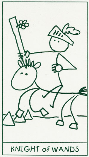 The Knight of Wands likes action and progress, but isn't too concerned with the usefulness of his actions or the ramifications to those around him.