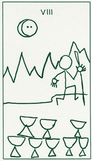 8 is an assignment number, and in the suit of Cups, it is about overcoming the urge to sink into depression caused by view on the long road ahead.
