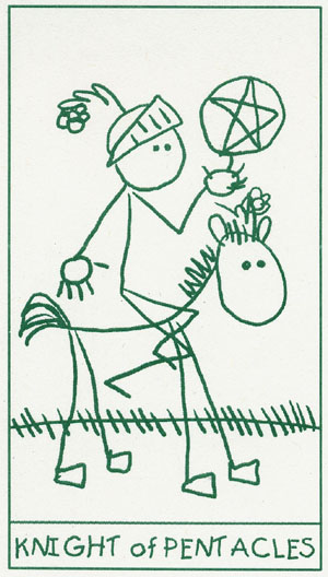 The Knight of Pentacles doesn't like to get worked up about anything. He prefers to make quiet steady progress by sticking to a persevering attitude, while not allowing himself to become exhausted or stressed.