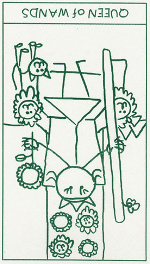 The Queen of Wands is drawn when you (have to) become more aware of the properties of the Wands suit; vitality, optimism and enthousiasm.
