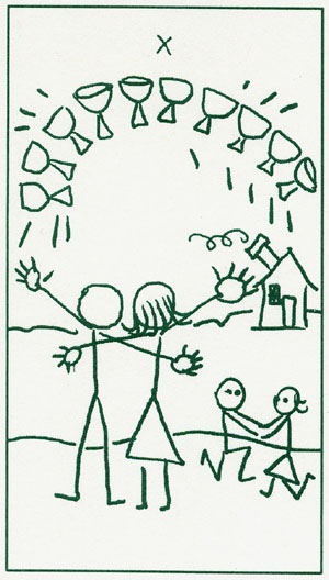 The 10 of Cups is the link to the Swords suit. It is time to leave your own emotions behind and face the world and the tasks ahead.