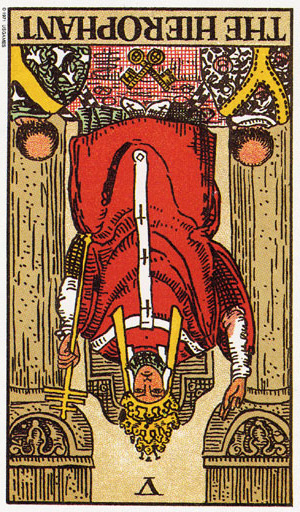 Where The Emperor is the chief of worldly power, The Hierophant is the head of spiritual matters.
