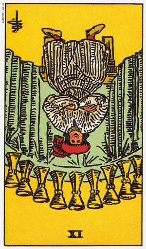 This card carries the number 11. In the Rider-Waite deck, Strength and Justice have swapped places because Waite saw links with the astrological signs Leo and Libra.