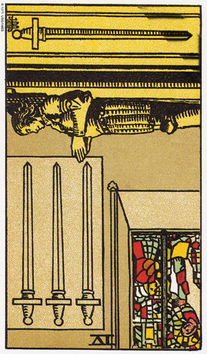 4 is the first number in the cycle of giving things shape. It's about making things real. The element of Swords also relates to making things real, so this enhances the effect so much that arrogance can cause you to exhaust yourself.