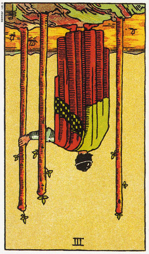 This card is about exposing your new ideas to the world. The Wand's element fire goes well with the number 3, as 3 is an output number, a number of results. Fire likes getting to results quickly.