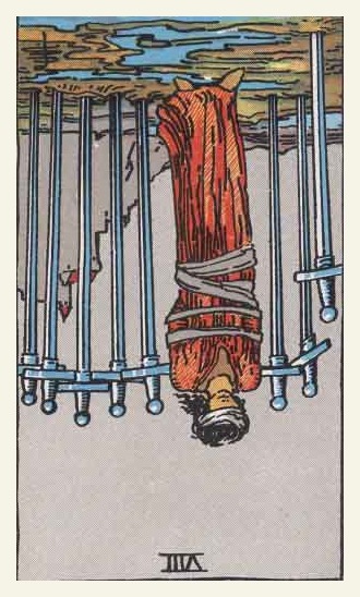 The 8 of Swords is about slowly regaining strength and energy. The 8 is an assignment number, and in the element of Swords it's a bit harder than usual.