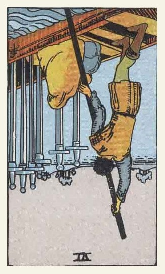 The 5 of Pentacles is an assignment-number card, and is about letting go of your securities. Pentacles element Earth (also) represents material posessions, so this card is about letting go of (some of) your worldly assets.