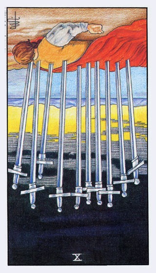 The 10 of Swords is about saying final goodbye to things or people that are bad to you.