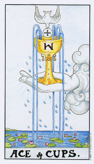 The Ace of Cups represents openness to your ideals. From all the ideas that you evaluated during the walk with Wands, you now have found the one you find valuable to invest your time and energy in.