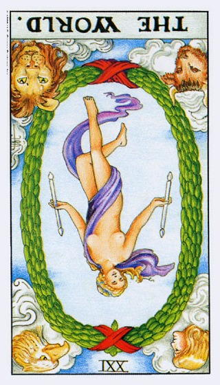 This card falls when you've completed all assignments, overcome all obstacles and are completely at peace with yourself due to your accomplishments. Yet Tarot wouldn't be Tarot if it didn't challenge you to enter entirely new worlds and start the process all over again.