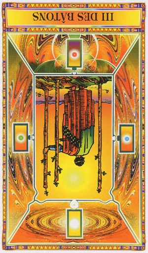 This card is about exposing your new ideas to the world. The Wand's element fire goes well with the number 3, as 3 is an output number, a number of results. Fire likes getting to results quickly.